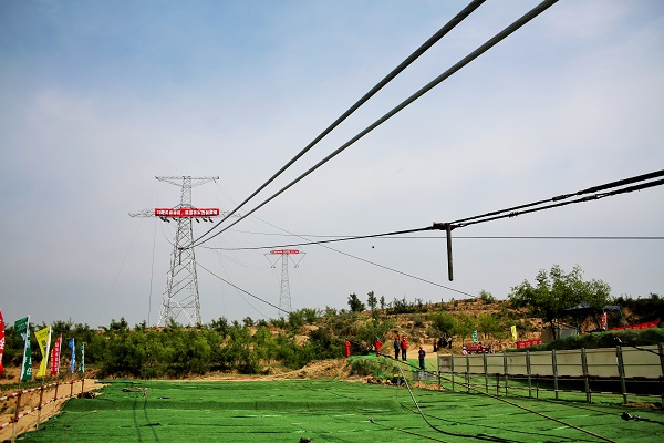 展放儀式在N264號塔位張力場舉行。國網陜西省電力公司特高壓工程管理部門,陜西標段施工單位、監理單位人員參加儀式。為強化架線工器具安全管理工作,陜送公司施工項目部嚴格按照國網直流部安全管理要求,在執行常規檢查的基礎上,將所有進場工器具上報中國電科院進行安全性能評估。經過進場審查和閉環整改,布置在現場的所有工器具均性能可靠。