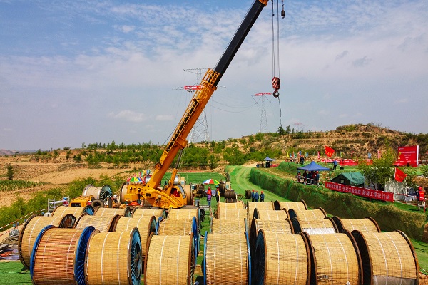 8月1日建軍節,有“陜電鐵軍”之稱的陜西送變電工程有限公司線路施工人員,在陜西榆林佳縣境內,舉行陜北—湖北±800千伏特高壓直流輸電線路工程陜西段首場導線展放儀式。號令發出,機器啟動,銀線升空,標志著該工程陜西段穩健轉序進入架線階段。